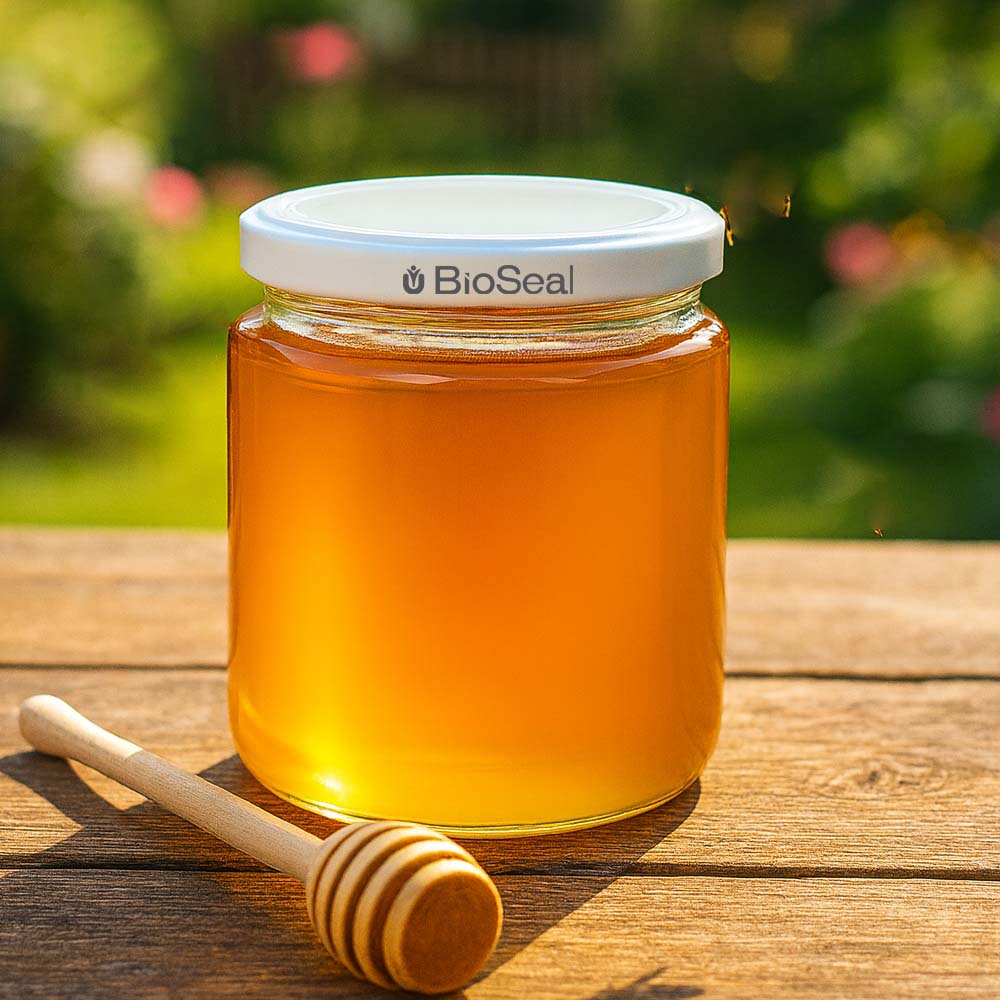 Tarro para miel de 350 g con tapa blanca BioSeal UNiTWIST