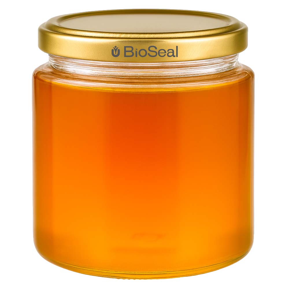 Tarro para miel de 350 g con tapa dorada BioSeal UNiTWIST