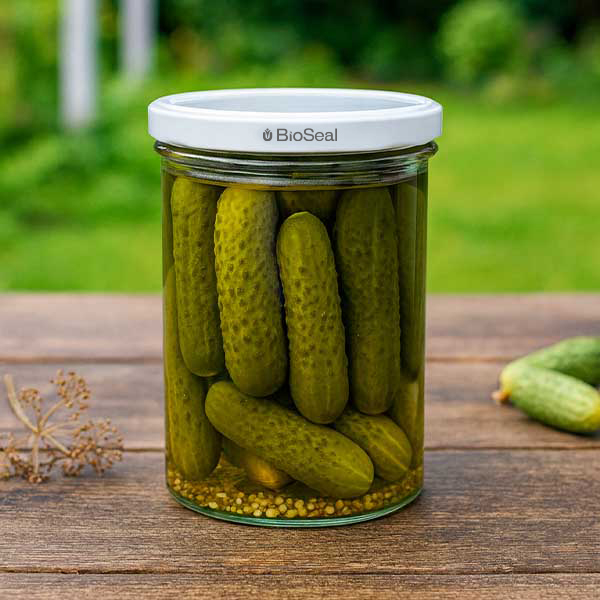 - Aplicación de la tapa: Al enlatar, deje suficiente espacio de aire por encima del contenido (aprox. 7%, dos dedos de ancho) y caliente bien antes de cerrar para que el cierre se vuelva elástico. Encontrará información detallada al respecto en las instrucciones que se adjuntan al envío.
