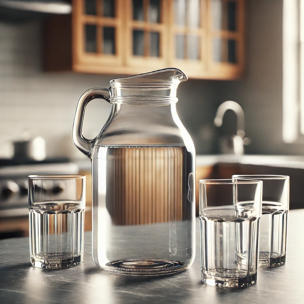 Jarras y vasos de cristal de diseño elegante procedentes de Francia con una superficie lisa y muy resistente.